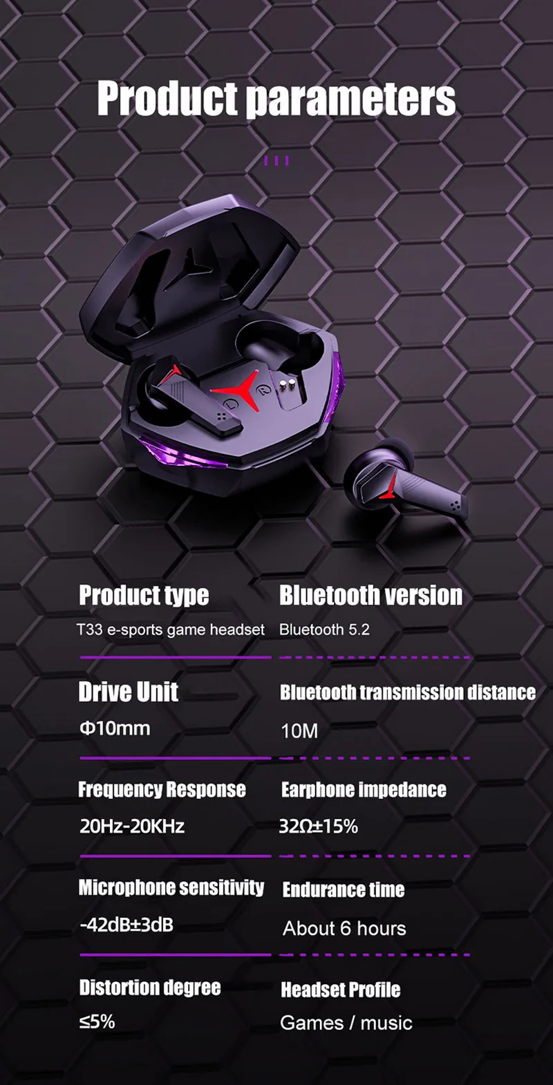 The LED breathing lamp, HiFi stereo sound, clear call and low game latency functions help you enjoy an excellent game experience.